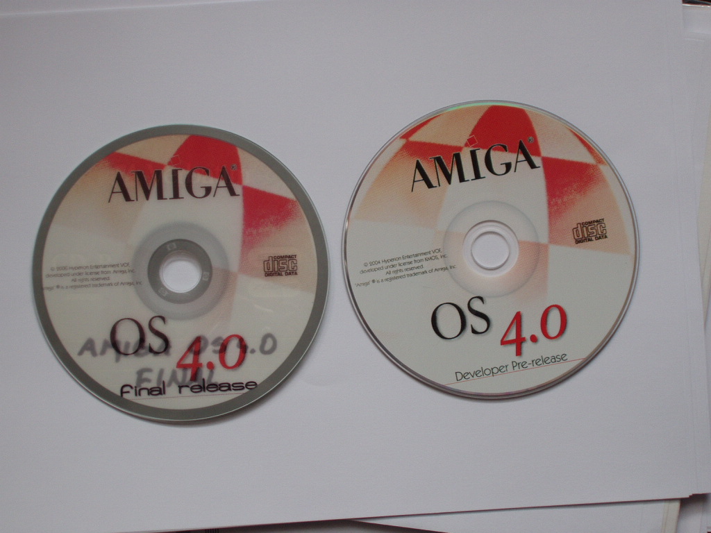 Jak już pisałem wcześniej poza drukowaniem fotografii czy dokumentów, HP Photosmart oferuje także możliwość wykonania tzw. "tatuaży" na płytach CD. W materiałach prasowych firma Hewlett-Packard mocno zachwala to rozwiązanie, jako estetyczne i trwałe plastikowe etykiety, odporne na ścieranie i wodę, a także na marszczenie, czy deformację nadruków. Z ochotą wypróbowałem więc i to rozwiązanie, jednak o ile w przypadku drukowania zdjęć byłem więcej niż usatysfakcjonowany, o tyle w przypadku druku plastikowych etykiet pozostał niedosyt. Zaprojektowałem sobie wzór nadruku na płytę z finalną wersją AmigaOS 4.0 (a w zasadzie to tylko zmodyfikowałem wizerunek płyty OS4 Developer Pre-release), w którym dominują tradycyjne amigowe kolory, czyli biel z domieszką czerwieni. Na załączonym zdjęciu widać wyraźnie przebicia będące efektem wcześniejszego opisania płyty czarnym mazakiem, co oczywiście można wybaczyć (w końcu jeśli chcemy zadrukować płytę, to zazwyczaj po niej wcześniej nie rysujemy), ale przebijają też niektóre fabryczne napisy. Słowem, w przypadku stosowania foli, należy raczej unikać jasnych kolorów i ograniczyć do wydruku ciemniejszych etykiet, tudzież w jakiś sposób np. przy pomocy białego mazaka, najpierw takie płyty spreparować (na drukarkach które, potrafią bezpośrednio drukować na płycie, zazwyczaj najpierw zadrukowuje się płytę na biało, tutaj niestety nie jest to możliwe). Nawet jeśli poradzimy sobie z problemem krycia to i tak dosyć trudno będzie zbliżyć się do jakości oryginalnie tłoczonej płyty, co również widać na załączonej fotografii. Z drugiej strony była to moja pierwsza i jak na razie jedyna wykonana etykieta, więc nie wykluczam, że bardziej wprawiony użytkownik Photosmarta, jest w stanie osiągnąć na tym polu znacznie lepsze efekty.